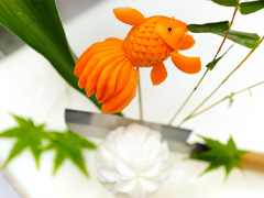 実演料理では板前が出張料理人になって、にぎり寿司・ブリ解体などの実演を行い、子どもたちの目の前で腕を振るいます。
