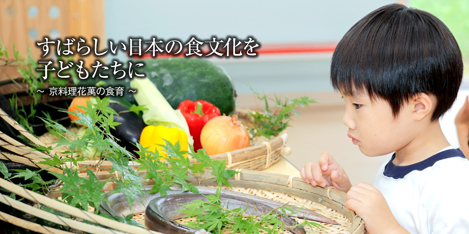 私たち京料理花萬のスタッフは、子どもたちに日本の食文化や食の楽しみ、食を知っていただくためにさまざまな工夫を凝らしています。
