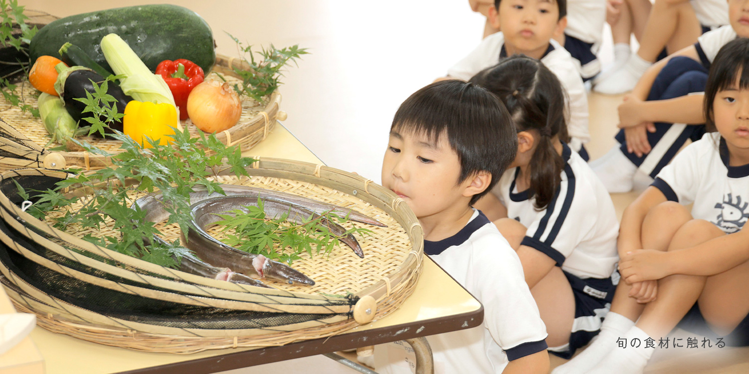 体で季節を感じながら、旬の野菜や魚などの食材を実際に見たり触れたりしてもらうことにより、季節ごとの食べ物の違いや味わいについてもっと深く興味を持って知っていただけます。
