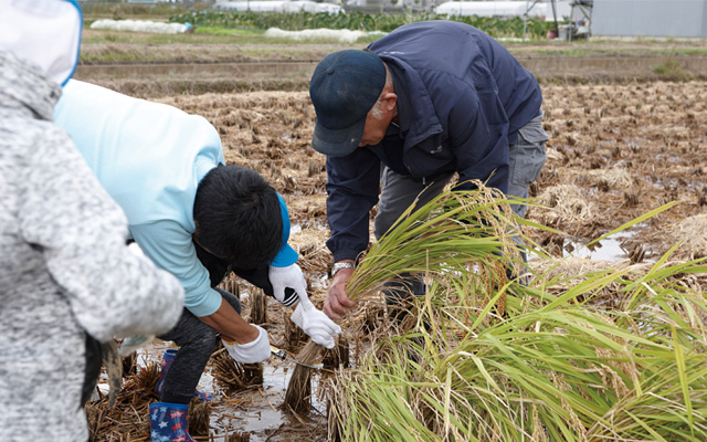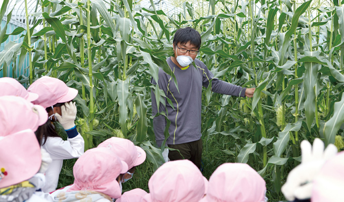 お米やとうもろこしなどを収穫体験していただくことで食材そのものに触れていただきます。
